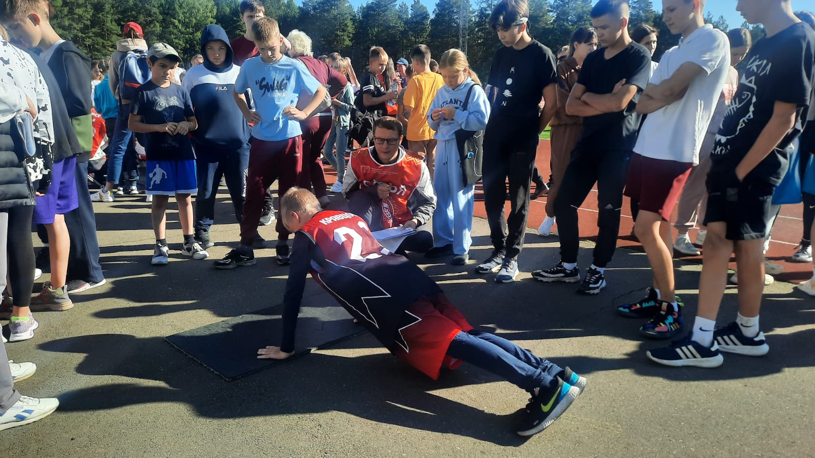 Мероприятие началось с зажигательного номера танцевального коллектива «Акварель-dance». Затем участники отправились на разминку с чемпионом. На весь день ребят зарядил бодростью и позитивом обладатель бронзовой медали XVI Паралимпийских летних игр Роман Тарасов. Это настоящий пример для подорожания. В копилке бегуна немало достижений: он становился бронзовым призером чемпионата мира, победителем и серебряным призером чемпионата Европы, многократным чемпионом России по легкой атлетике спорта слепых.