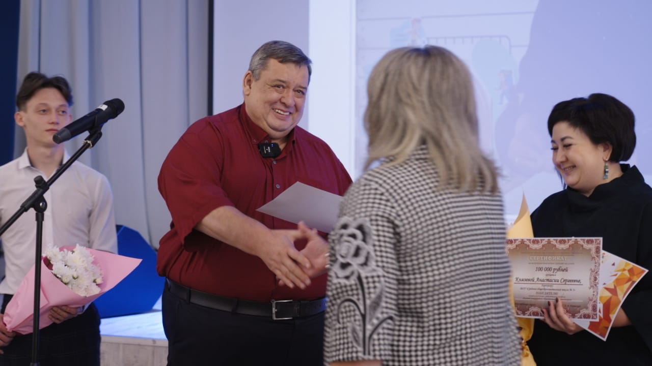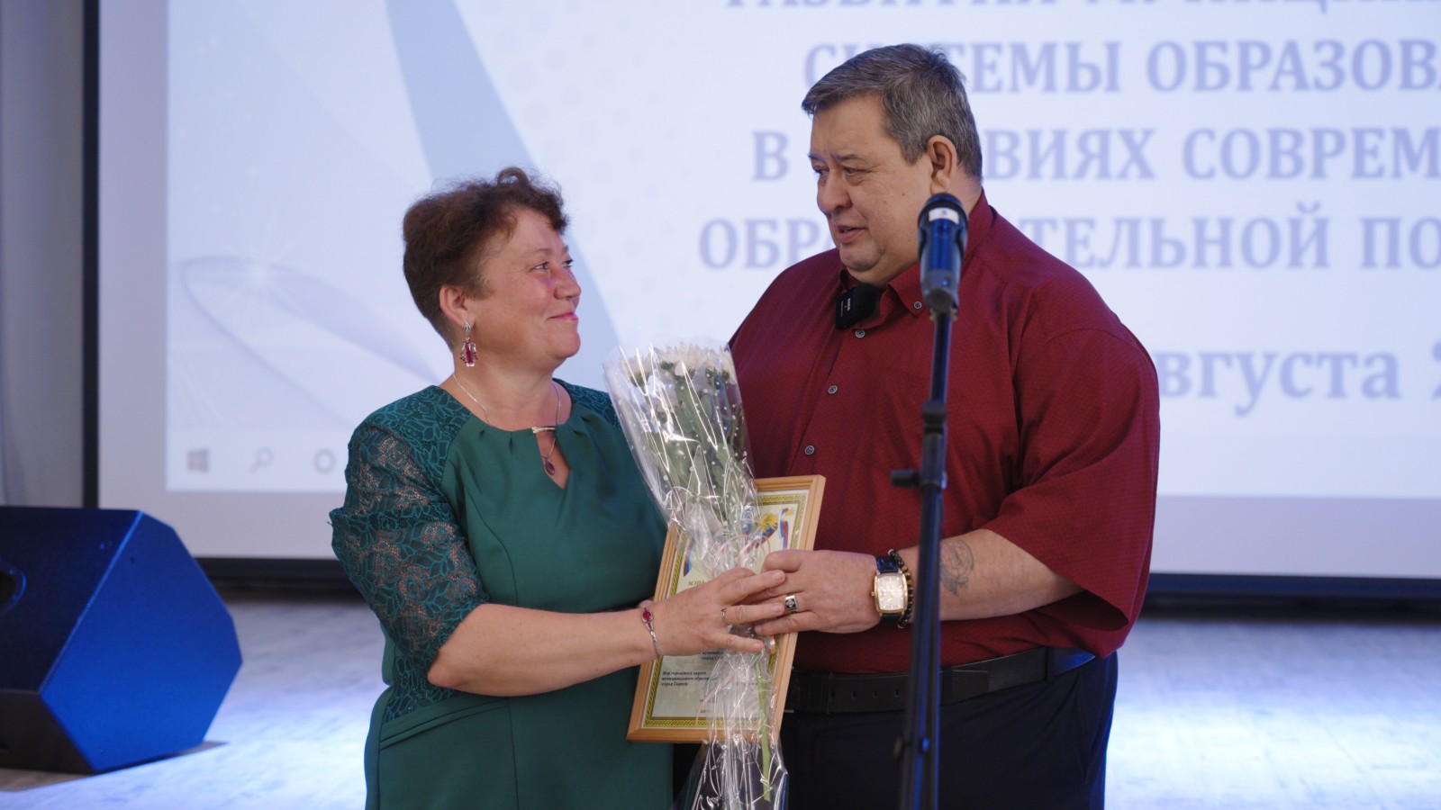 Посетил педагогическую конференцию и мэр города Олег Боровский, который поздравил всех педагогов с началом нового учебного года и наградил победителей и призеров муниципального конкурса «Лучший руководитель». Призером III степени стали Виктория Журавлева, заведующая детским садом № 10, и Надежда Чупрова, директор школы № 4 им. Д. М. Перова, помимо грамот они получили денежные сертификаты на сумму 30 тыс. рублей. Диплом II степени и денежный приз в размере 50 тыс. рублей получила Ирина Федяева, директор ДДТ "Созвездие". Победу в конкурсе разделили Анастасия Князева, директор школы № 5, и Елена Колодкина, заведующая детским садом № 27, их наградили премией в 100 тыс. рублей. Кроме этого, градоначальник вручил почетные грамоты и благодарности сотрудникам системы образования и передал ключи от квартир восьми молодым специалистам.