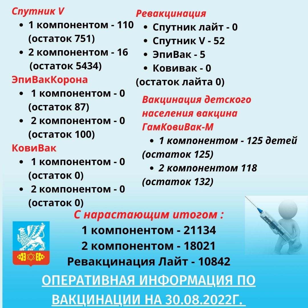 Оперативная информация по вакцинации против коронавирусной инфекции на вечер 30.08.2022г.