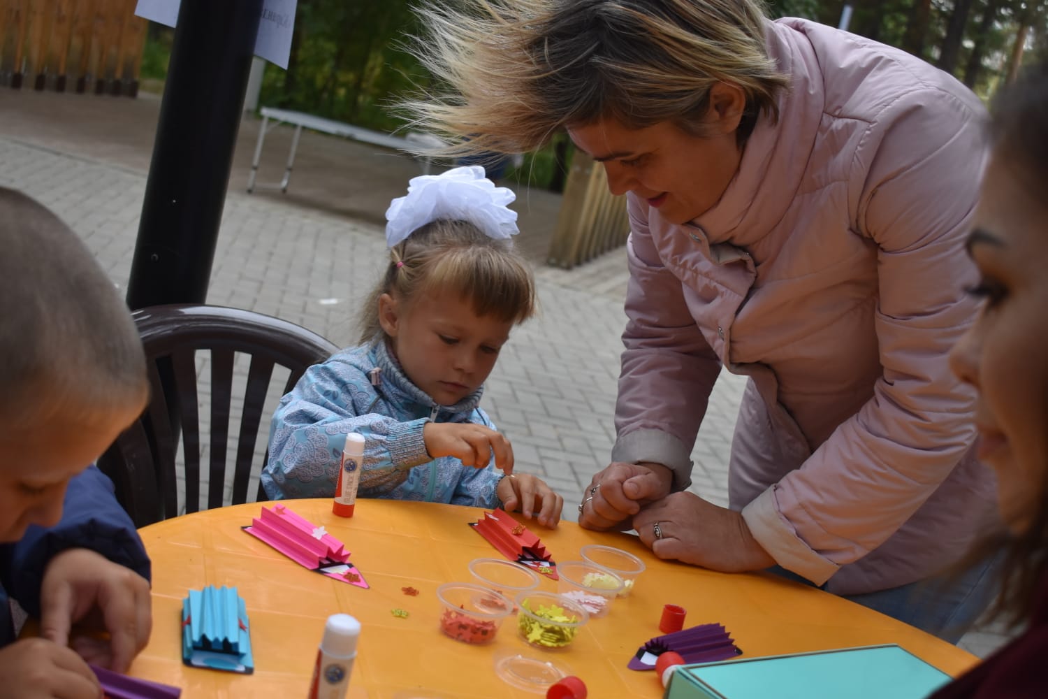 Дети с удовольствием делали разноцветные карандаши в технике оригами, а объемные карандаши-закладки ребята изготавливали под чутким руководством работников саянской картинной галереи.