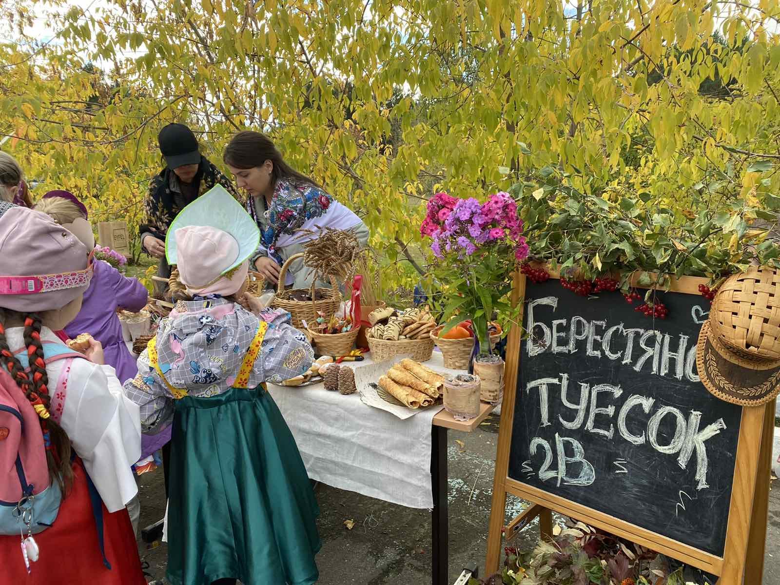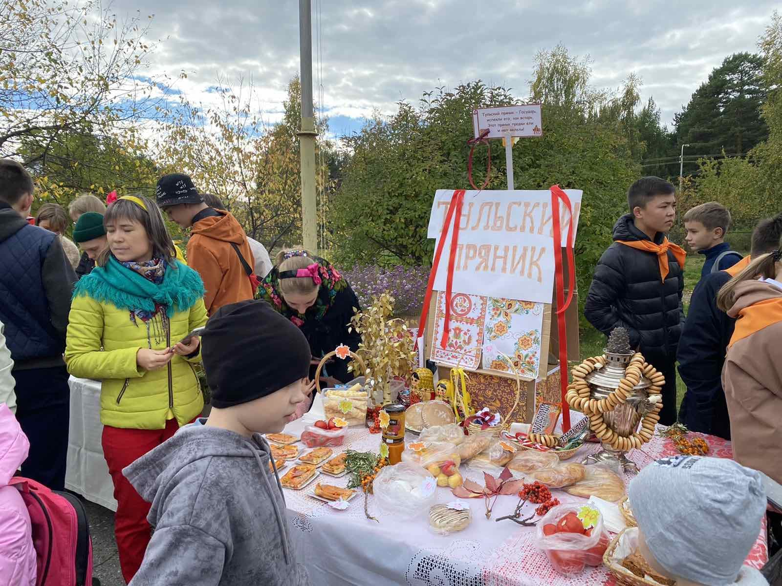 В ярмарке приняли участие все 37 классов школы. Ученики, педагоги и родители подготовили на продажу овощи, ягоды, домашнюю консервированную продукцию, различную выпечку и собственные поделки. А свое рабочее место и костюмы они оформляли в стиле какого-нибудь народного ремесла. Например, можно было увидеть столы, где представляли гжель, хохлому , жостовскую роспись, берестяные изделия, тульский пряник и многое другое.