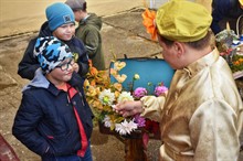 Традиционная осеняя ярмарка прошла сегодня в школе №5. Как и большинство мероприятий, проводимых в нынешнем году, она посвящена Году культурного наследия народов России. Жюри оценивало оформление торгового места и творческие находки классов. Весёлыми частушками ребята зазывали присоединиться к празднику изобилия. Столы ломились от разнообразия угощений: булочек, пирогов, свежих овощей, солений, варений, меда, различных заготовок на зиму.