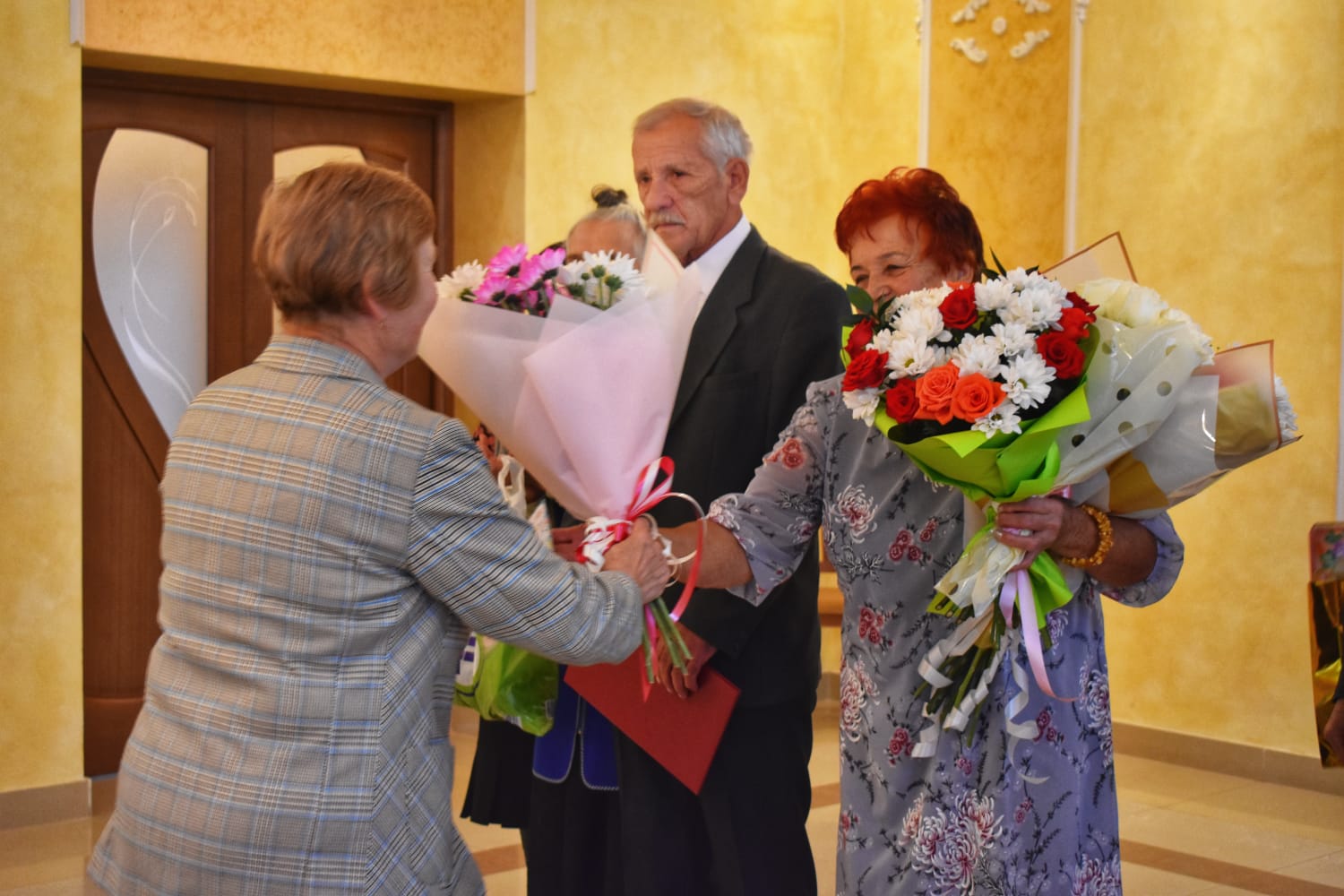 В этот осенний день начальник саянского отдела загс Марина Дощечкина провела для семейной пары торжественную регистрацию с соблюдением всех традиций – супруги вновь поставили свои подписи на важном документе, только в этот раз это была Книга почетных юбиляров. Соколовы, конечно, уже не обменивались кольцами, но скрепили свой полувековой союз поцелуем.