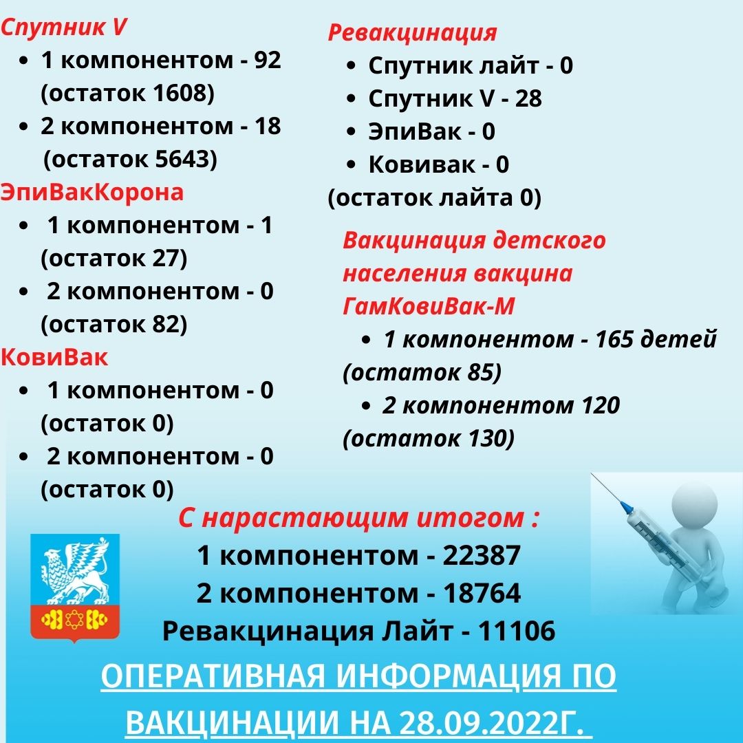 Оперативная информация по вакцинации против коронавирусной инфекции на 28.09.2022г.