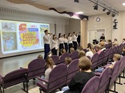 Поздравить юных художников с творческими успехами пришли ребята с музыкального отделения. С песней «Родина Сибирь» выступил вокальный ансамбль «Экспромт+», а Мария Черемичкина подарила присутствующим музыкальный «эскиз» на фортепиано композитора Рейнгольда Глиэра.
