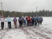 После награждения участников спартакиады, на старт вышли любители северной ходьбы, большинство из которых члены клуба «Саянские нордики». Для них дистанция в два километра – это просто приятная прогулка по первому снежку!