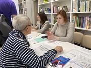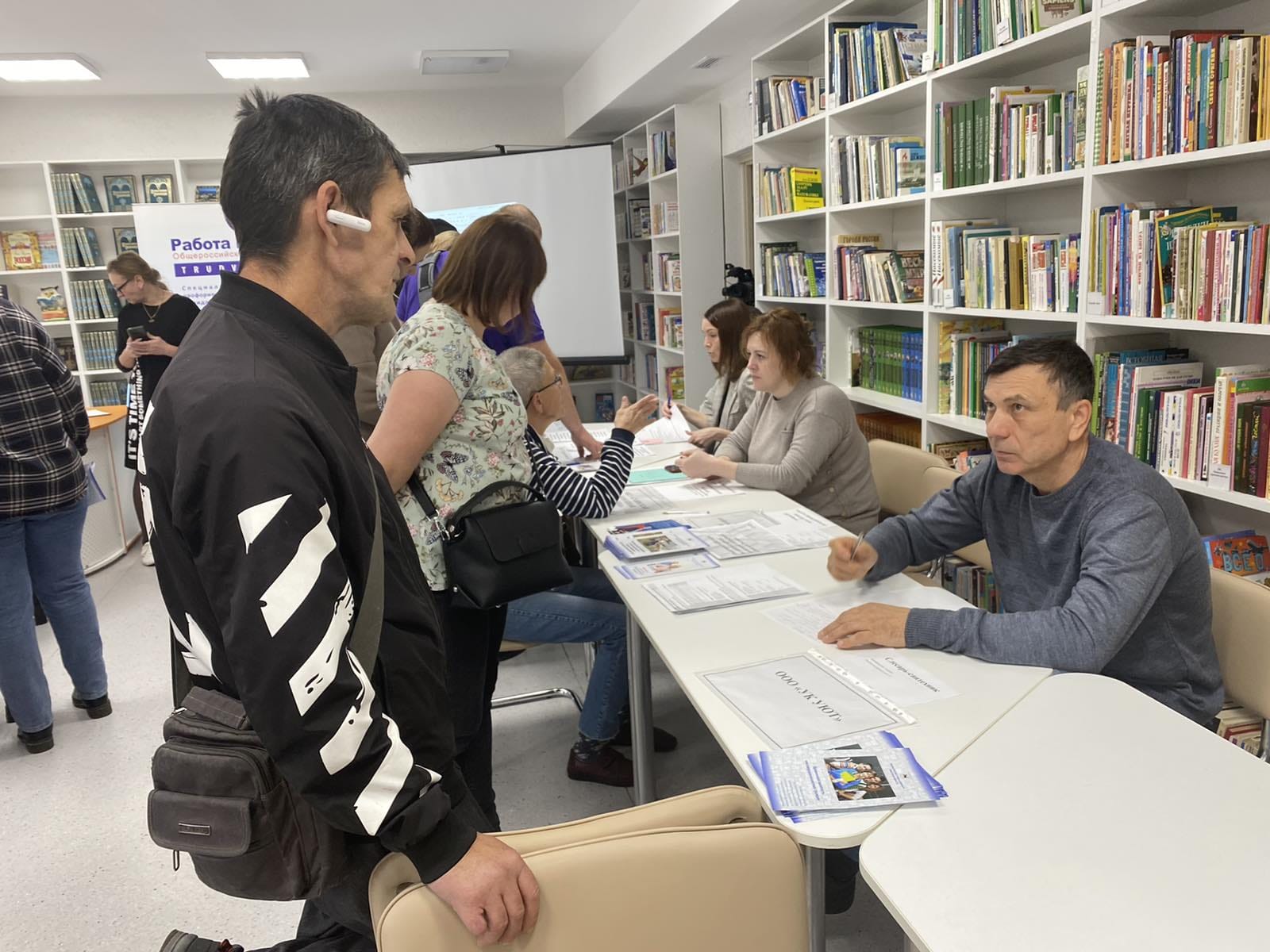 Затем настала пора безработных общаться с работодателями. Люди оживленно переходили от одного стола к другому, беседуя с представителями организаций и узнавая все требования и условия работы. Многие заинтересовались представленными предложениями и оставили свои контакты.
