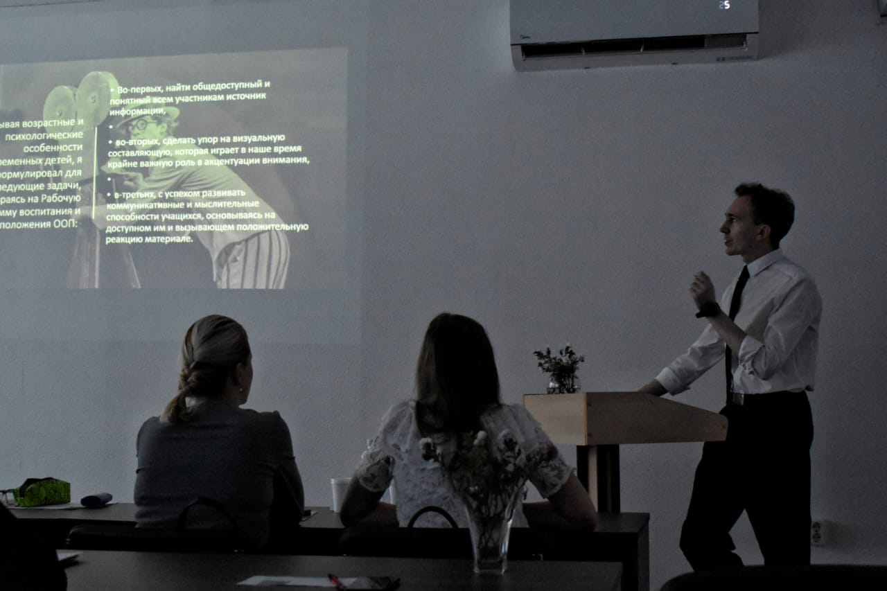 Так, педагогическое сообщество обсудило способы развития творческих способностей и нестандартного мышления учащихся. Учителя-предметники поделились опытом применения игровых и кейс-технологий в образовательном процессе. Огромный интерес вызвала технология «мировоззренческого кино», которую применяет учитель истории и обществознания школы № 5 Игорь Зелинский.