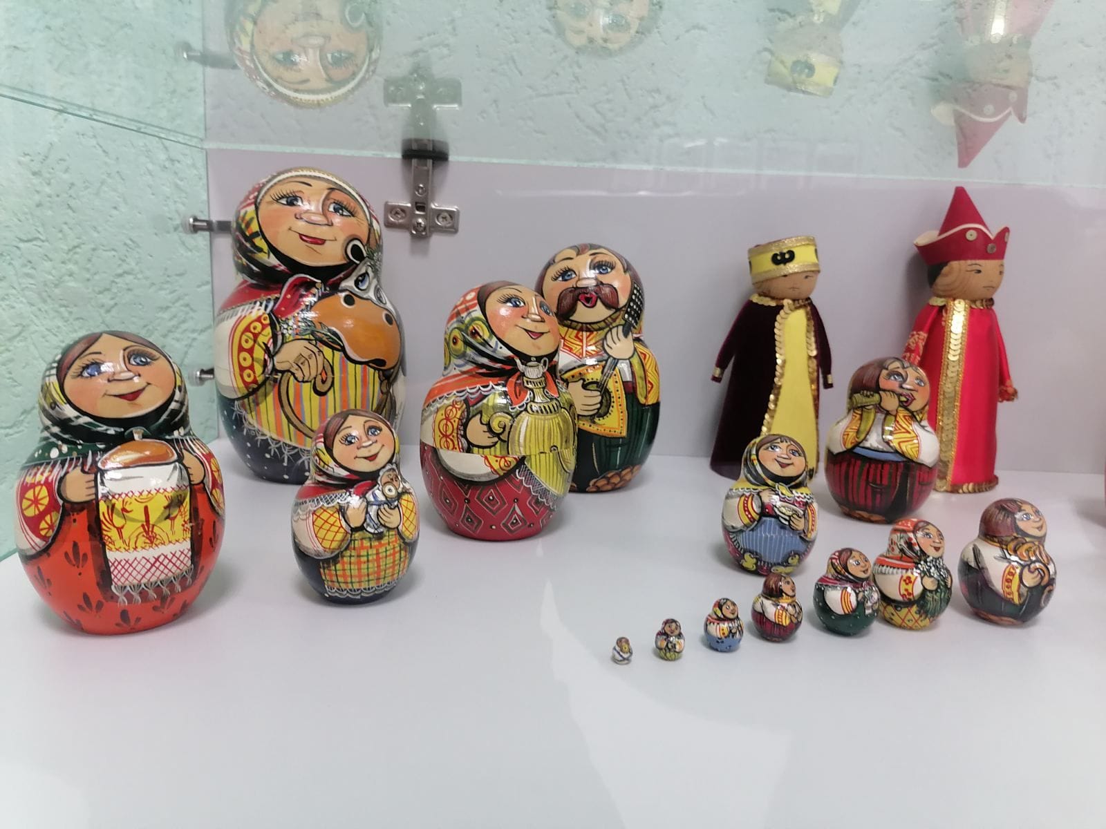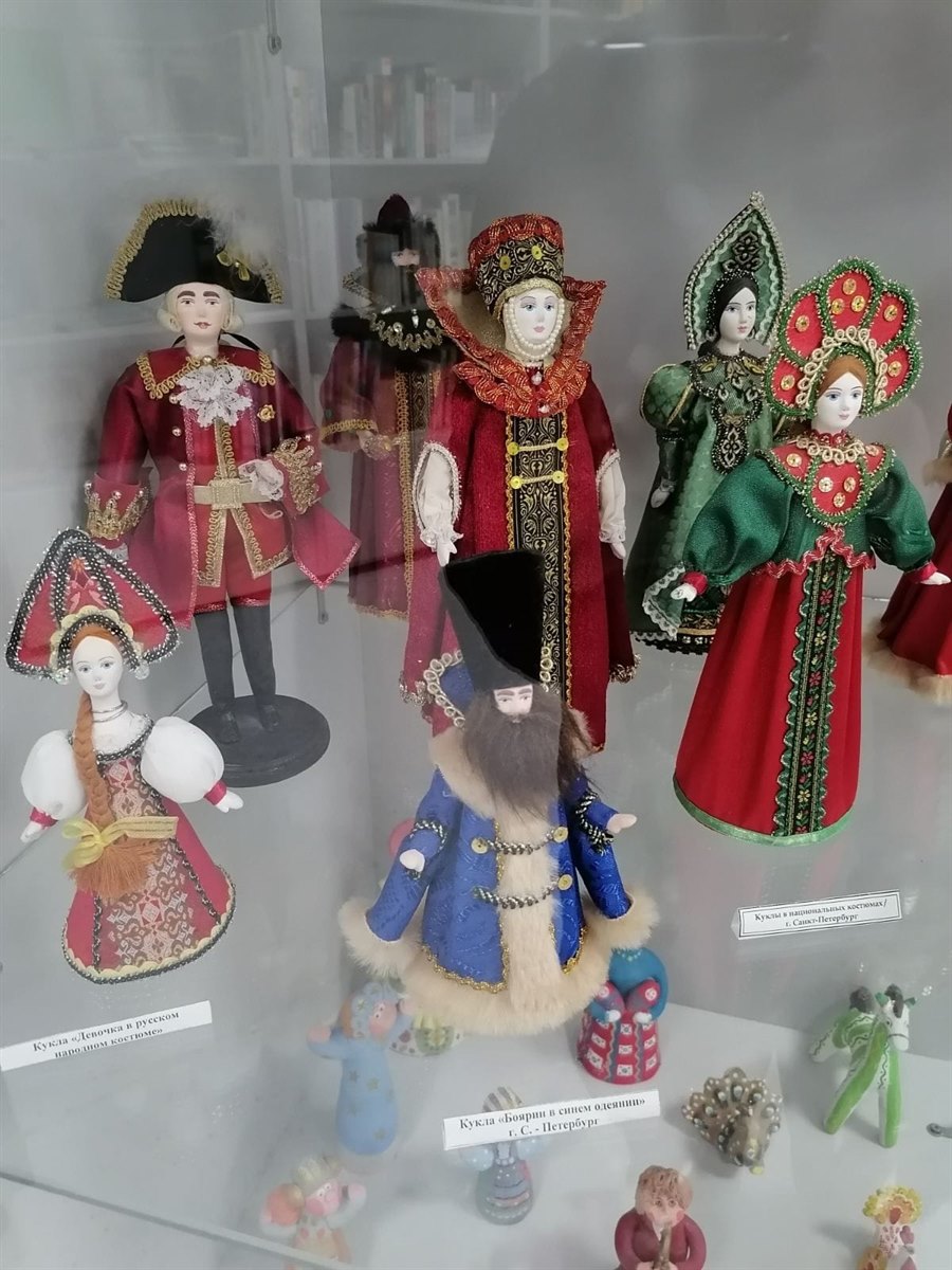Здесь представлено свыше пятидесяти экспонатов, изготовленных талантливыми руками мастериц и художников из Саянска и Санкт-Петербурга. Как рассказала специалист детской библиотеки Наталья Кошкина, большинство кукол библиотеке подарили преподаватели Детской школы искусств, но есть экспонаты, которые были приобретены в Санкт-Петербурге, к примеру, семейство семеновских и сергиево-посадских матрешек. Куклы из Санкт-Петербурга конечно же повторяют образы дворцовых персонажей, есть среди них и дамы в ярких кокошниках и суровые бояре.