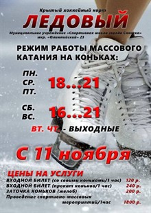 - Крытый хоккейный корт "Ледовый" работает с 11 ноября.