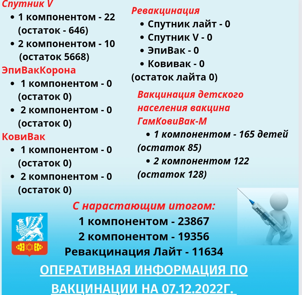 Оперативная информация по вакцинации против коронавирусной инфекции на 07.12.2022г.