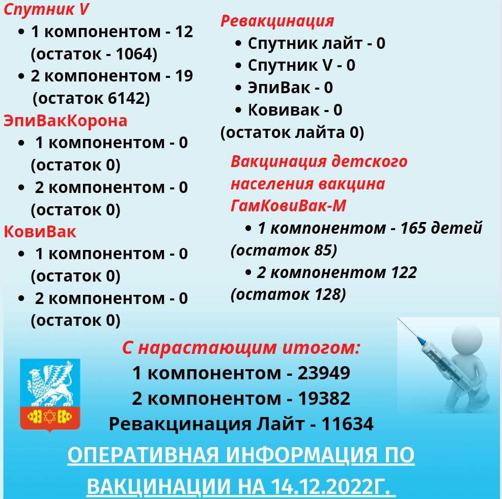 Оперативная информация по вакцинации против коронавирусной инфекции на 14.12.2022г.