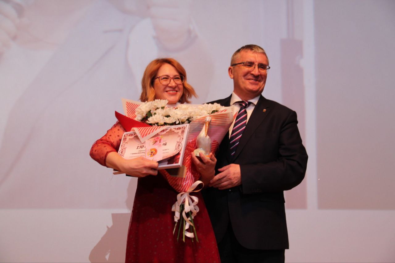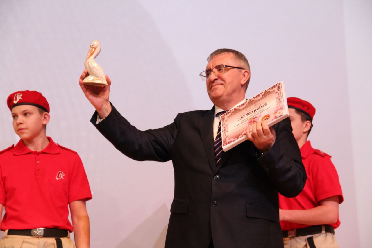 Сначала Александр Владимирович вручил дипломы и призы участникам, лауреатам и призерам конкурса. Затем наступили волнующие минуты объявления победителей конкурсов. "Воспитателем года - 2022" стала воспитатель детского сада № 35 "Радуга" Юлия Юрина, звание "Учителя года - 2022" был удостоен учитель школы № 5 Игорь Зелинский. Оба победителя получили дипломы, символы педагогического труда - пеликанов и денежные сертификаты суммой в 150 тыс. рублей.