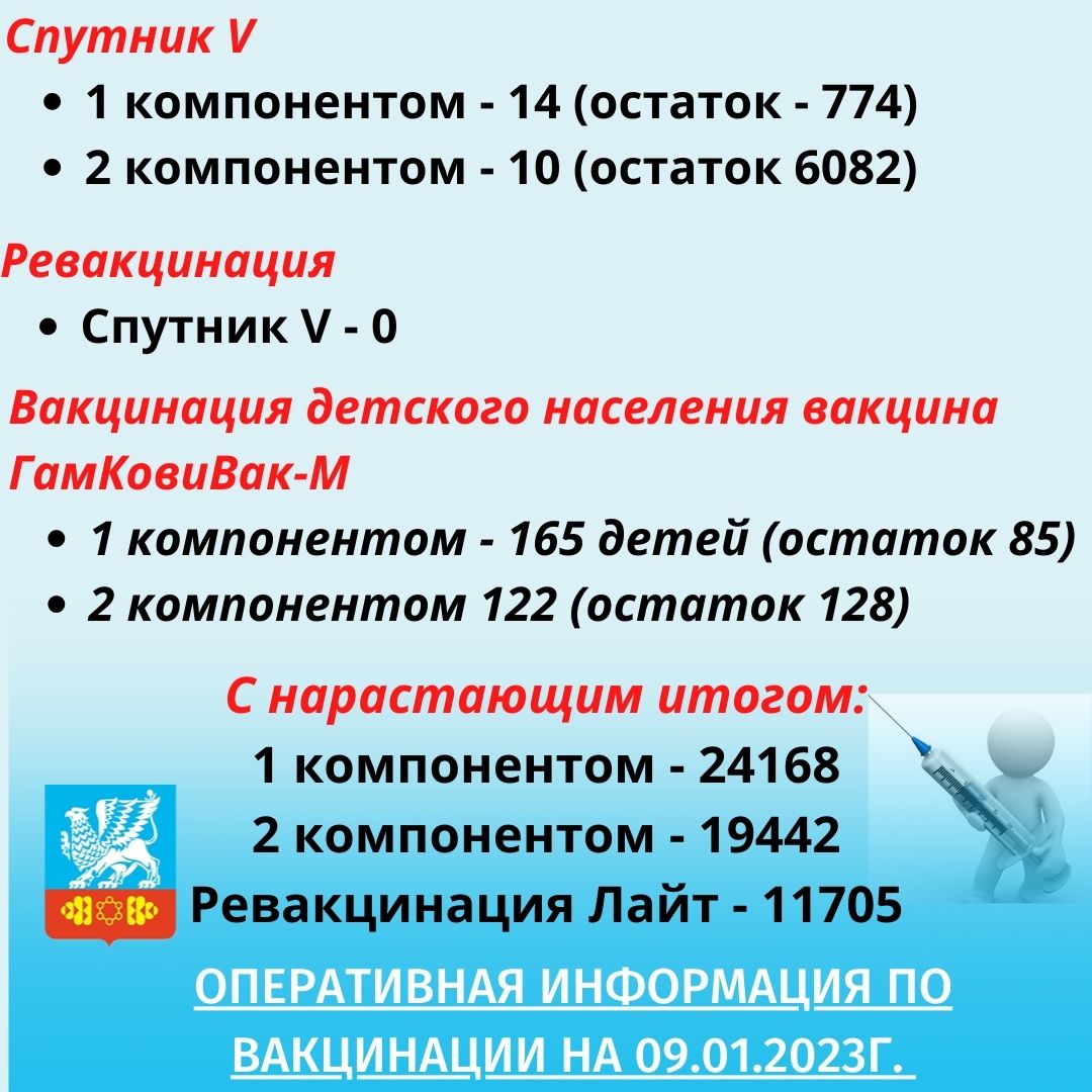 Оперативная информация по вакцинации против коронавирусной инфекции на 09.01.2023г.