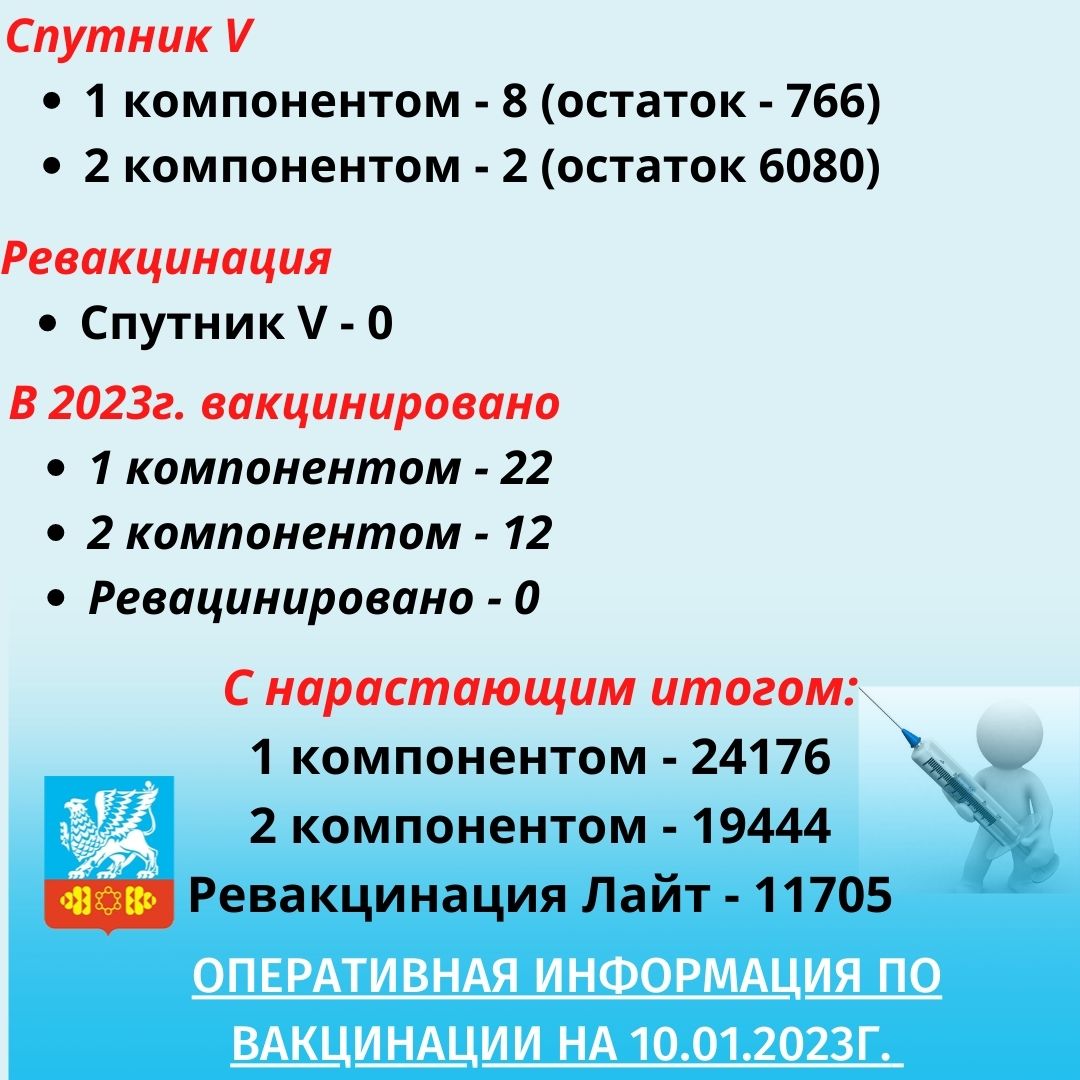 Оперативная информация по вакцинации против коронавирусной инфекции на 10.01.2023г.