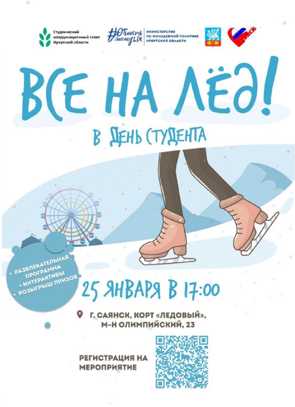 Администрация города Саянска совместно с Министерством по молодежной политике Иркутской области и Студенческим координационным советом Иркутской области, подготовили для вас отличный праздник здоровья и позитива – "Все на лёд! ".