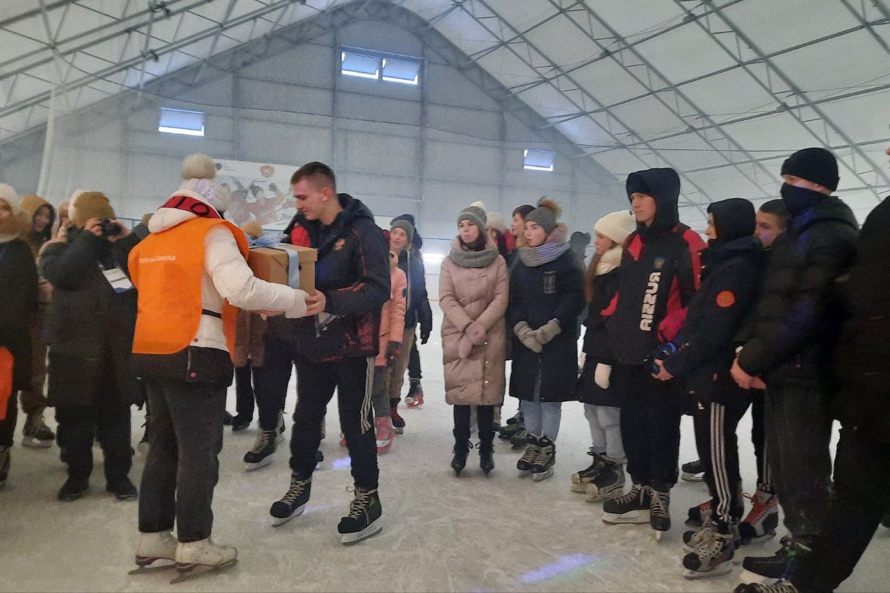 Пришел поздравить студентов мэр города Олег Боровский, он отметил, что крытый каток в городе - это замечательное место для интересного времяпрепровождения и праздников, защищенное от ветра и снега.