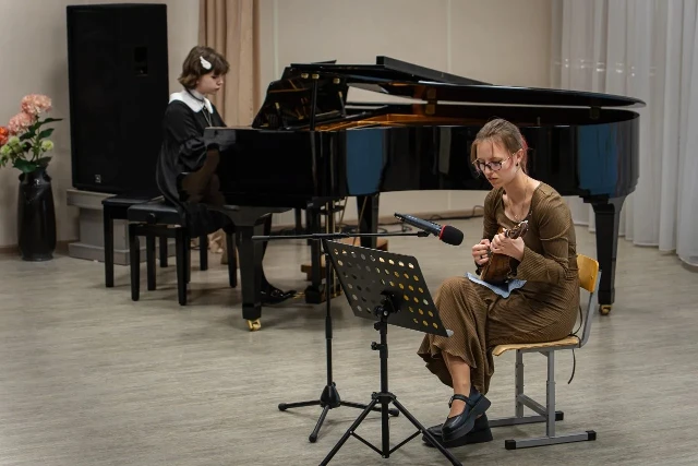Музыканты выступали не только сольно: несколько произведений были исполнены фортепианными дуэтами. Русскую народную песню «Что ты травушка рано пожелтела» ученица 7 класса Даная Васильева представила в сопровождении домры преподавателя школы Ульяны Капустиной. Под аккомпанемент рояля прозвучали и вокальные пьесы. Одну из них спела выпускница школы Надежда Сапрыкина.