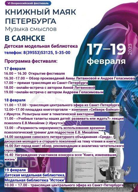 Приходите сами! Приводите друзей! Уверены, что фестиваль «Книжный маяк Петербурга» станет традиционным в Саянске!