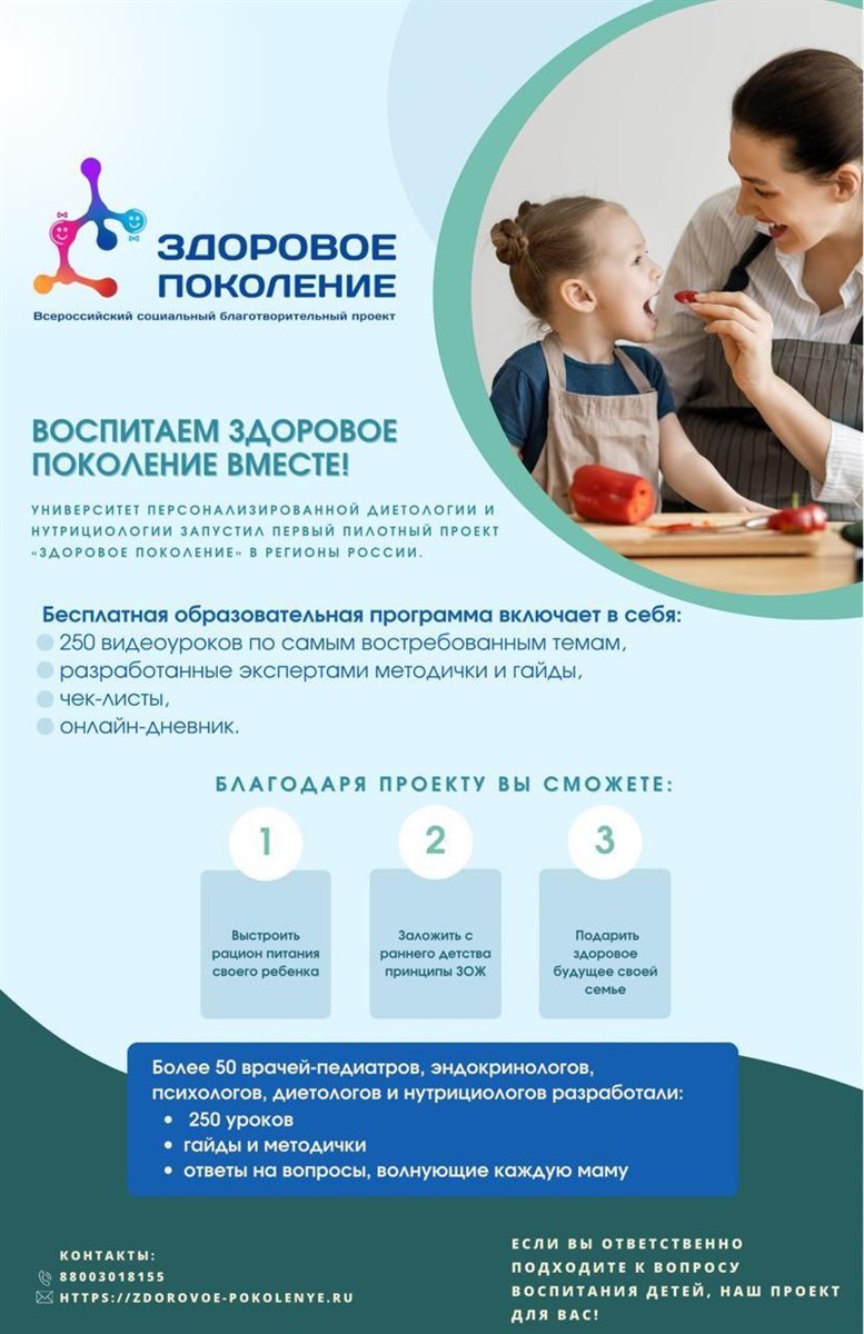 Он позволяет пройти бесплатное обучение в дистанционном формате и стать компетентными в области правильного питания детей и принципов здорового образа жизни.