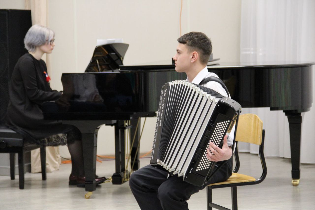 Ребята пели в хоре, дуэтом и сольно, играли на самых разных музыкальных инструментах, танцевали, и все без исключения через свои выступления дарили гостям свое душевное тепло и любовь. Подготовили подарки женщинам не только ученики, но и преподаватели Детской школы искусств. Прекрасное произведение на балалайке и гитаре исполнили Мария Гримберг и Евгений Ивакин.
