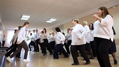 Однако сбалансированного питания недостаточно для того,чтобы быть здоровым. Для хорошей физической формы и отличного настроения необходимо как можно больше двигаться. Учащиеся педагогического класса решили напомнить об этом всей школе, подготовив утреннюю гимнастику. Зажигательные движения на перемене первыми разучили учителя.