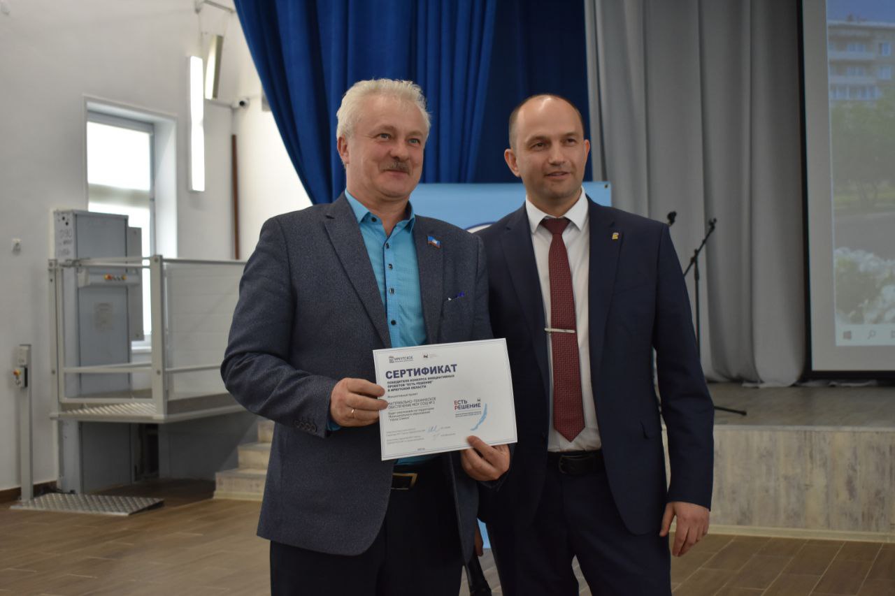 Помимо знакомства с представителями общественности, Дмитрий Мясников вручил партийные билеты овым единороссам, а также сертификаты директорам шести школ города по региональному партийному проекту «Школьный учебник».