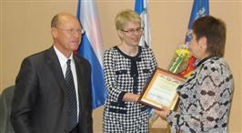 За профессионализм, эффективную муниципальную службу и в связи с 55-летним юбилеем Валентина Леонидовна Григорашенко, главный специалист отдела по предоставлению субсидий Комитета по архитектуре, ЖКХ, транспорту и связи, награждена Почетной грамотой мэра.