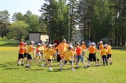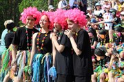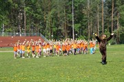 Детвора собралась на стадионе гимназии в ожидании представления. Летние детские площадки выставляли по одной команде для участия в творческом состязании. Им необходимо было подготовить креативные номера на основе советской мультипликации.
