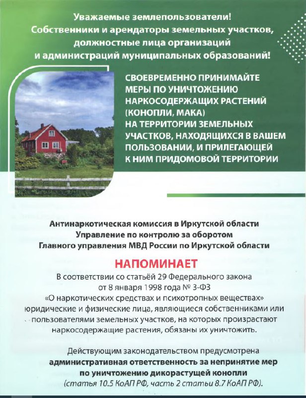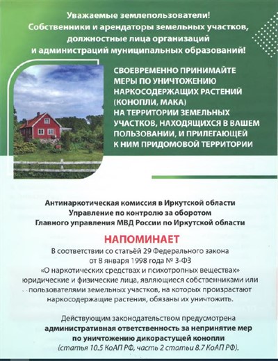 Своевременно принимайте меры по уничтожению наркосодержащих растений (конопли, мака) на ваших участках!
