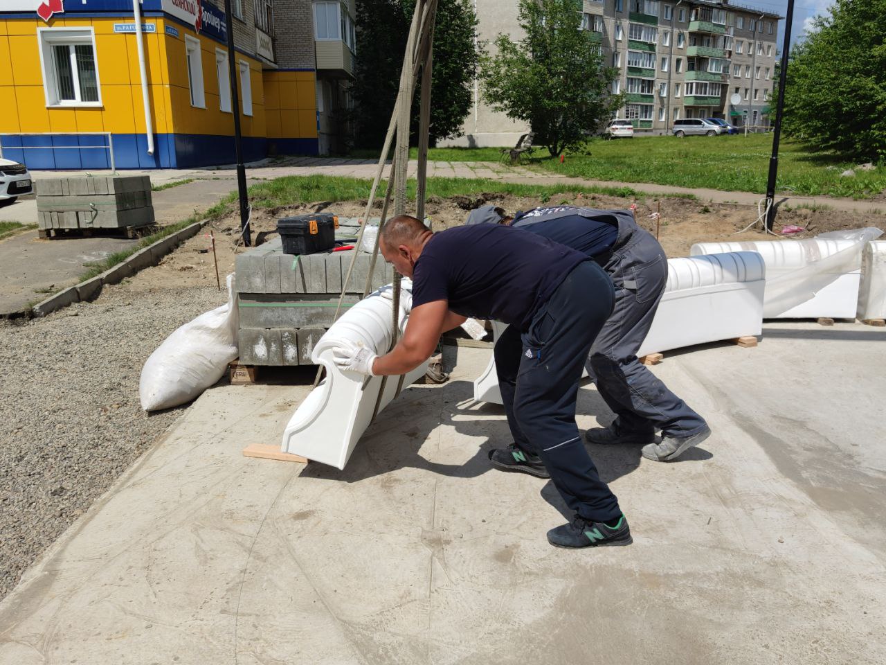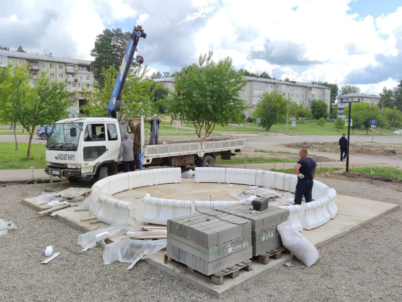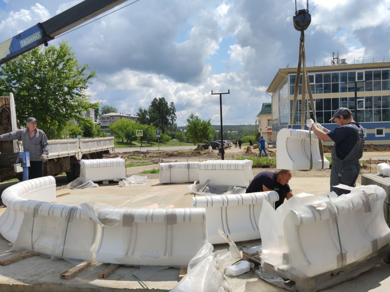Сегодня началась установка чаши фонтана на месте будущего «Бульвара по улице Рагозина».
