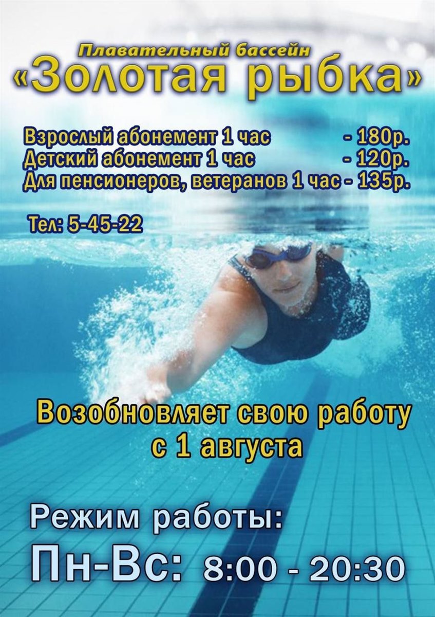 Плавательный бассейн "Золотая рыбка" возобновляет свою работу с 1 августа