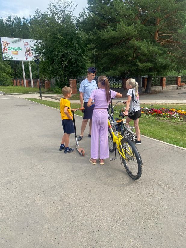 Юным участникам дорожного движения напомнили о том, что передвигаться по дорогам общего пользования на велосипеде можно только с 14 лет, а управлять мототранспортом можно только при наличии водительского удостоверения и защитной экипировки.