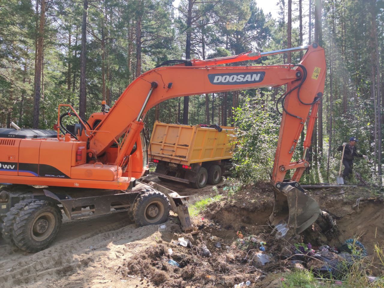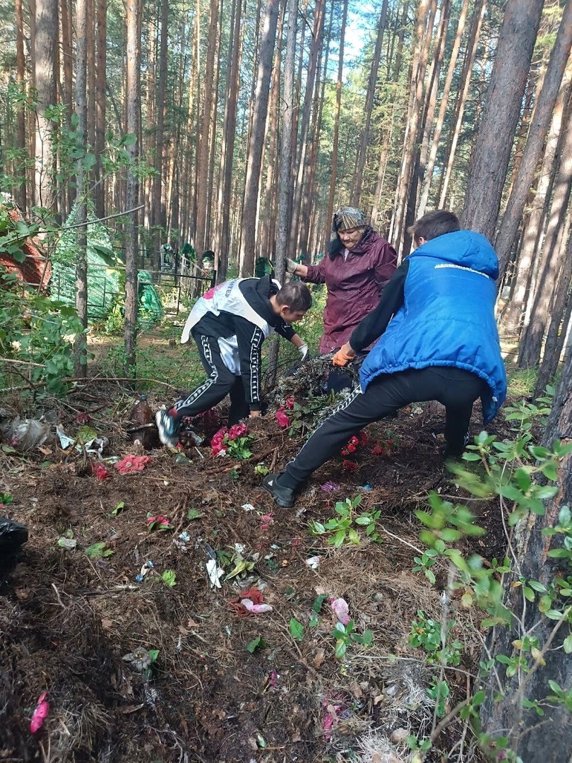 Субботник по уборке мусора на кладбище в районе Буринской дачи