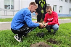 Сегодня во дворе Детской школы искусств прошла акция «Аллея первых». Активные участники российского движения детей и молодежи «Движение первых» из школ и Химико-технологического техникума, а также выпускники ДШИ вышли на территорию учреждения культуры, чтобы высадить саженцы красного канадского клена.