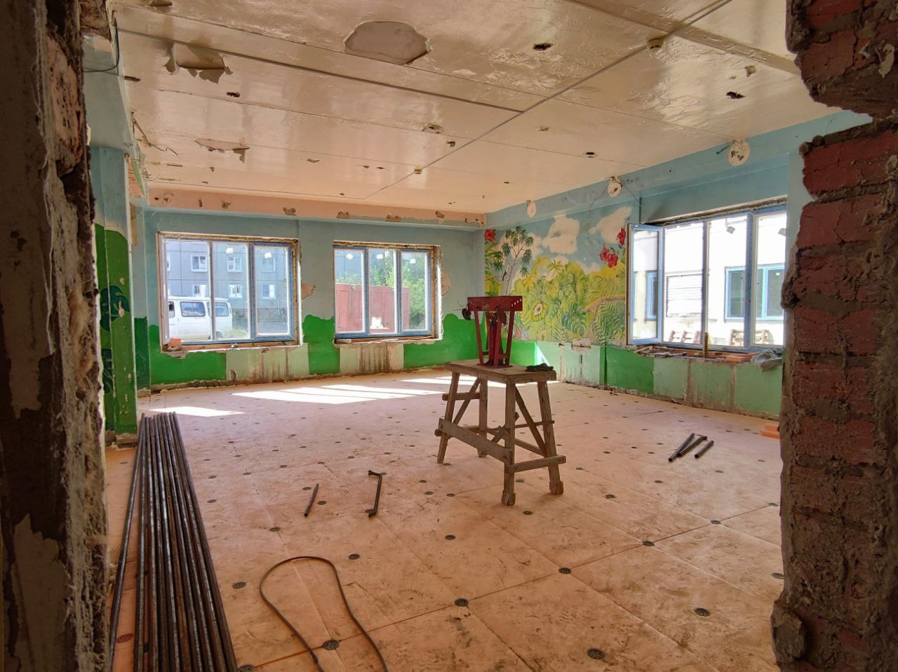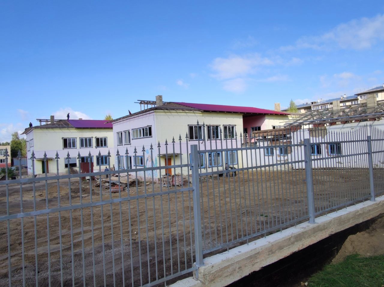 На сегодняшний день в приоритете работы по покрытию кровли, важно успеть выполнить эту работу до выпадения осадков. Ведутся внутренние работы. Также в планах у подрядчика в рамках благоустройства установить бортовой камень.