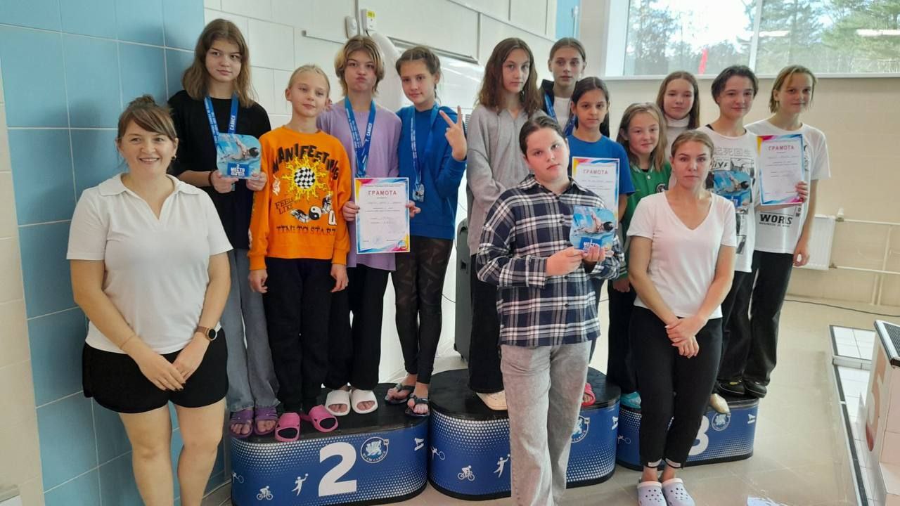 В эстафетном плавании команда девочек города Саянска завоевала золото.