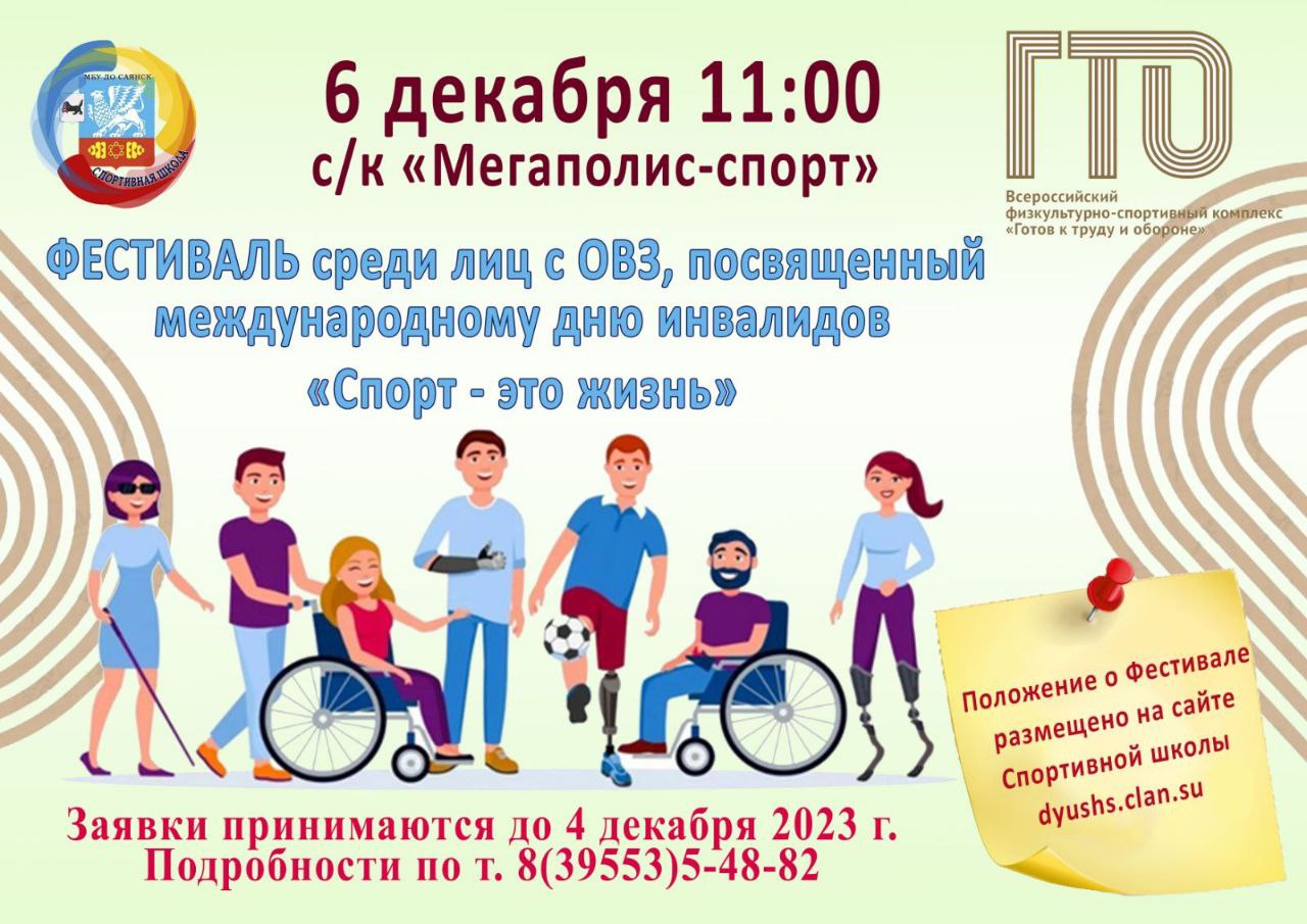 Фестиваль среди лиц с ограниченными возможностями здоровья, приуроченный к международному Дню инвалидов "Спорт - это жизнь"