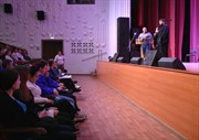На сцене ДК "Юность" состоялось пленарное заседание. Его открыл епископ Саянский и Нижнеудинский Алексий. С приветственным словом от имени мэра города Олега Боровского выступил его заместитель по социальным вопросам Александр Ермаков.