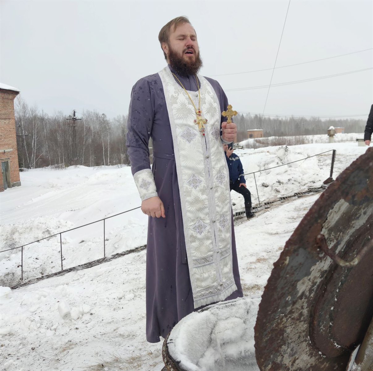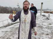 Обряд совершения Таинства на Шехолайском водозаборе, с которого осуществляется подача воды в Саянск, провёл секретарь саянской епархии протоиерей Иоанн Борисюк.