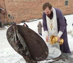 Ежегодная традиция – чин освящения воды, которая поступает в дома саянцев