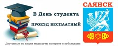 В День российского студенчества – 25 января 2024 года саянские студенты смогут бесплатно по предъявлении студенческого билета осуществить поездки по муниципальным маршрутам общественного транспорта.