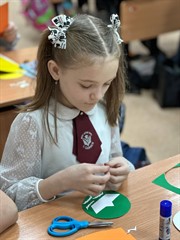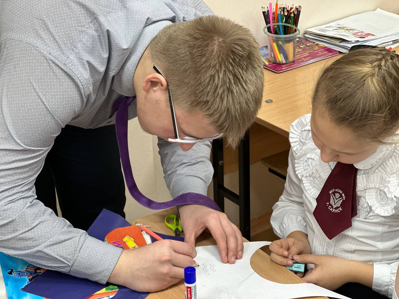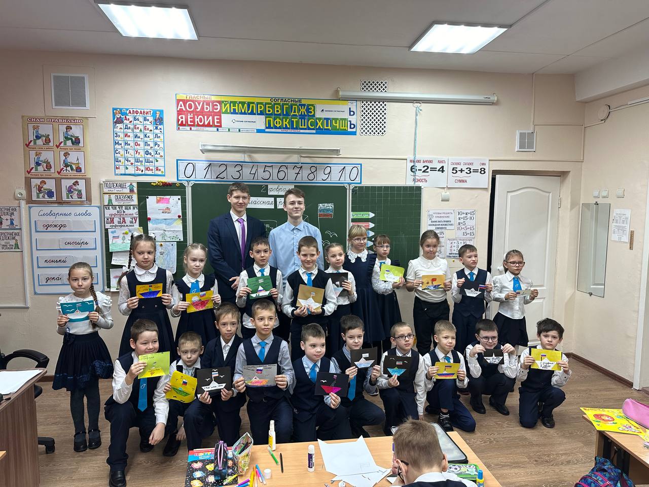 Кроме этого, школа на мгновение превратилась в творческую мастерскую: обучающиеся начальных классов создавали своими руками поздравительные открытки с предстоящим Днём защитника Отечества. Провели мастер-классы выпускники педагогического класса.