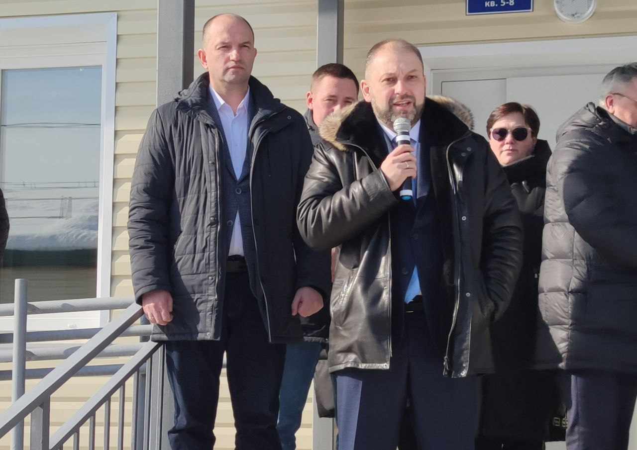 От лица Министерства строительства Иркутской области поздравил новосёлов временно замещающий должность зам. Министра строительства Иркутской области Е.В. Шведов и отметил, что на этом министерство не остановится и планирует построить в Саянске ещё 80 квартир такого же высокого качества.