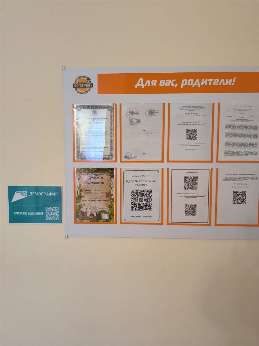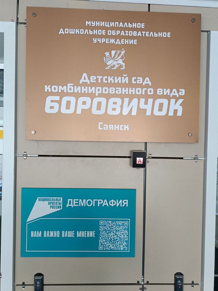 В Саянске в рамках реализации президентских нацпроектов «Образование» и «Демография» такой QR-код размещен на входе и внутри детского сада "Боровичок" (мкр-н Мирный, 36).