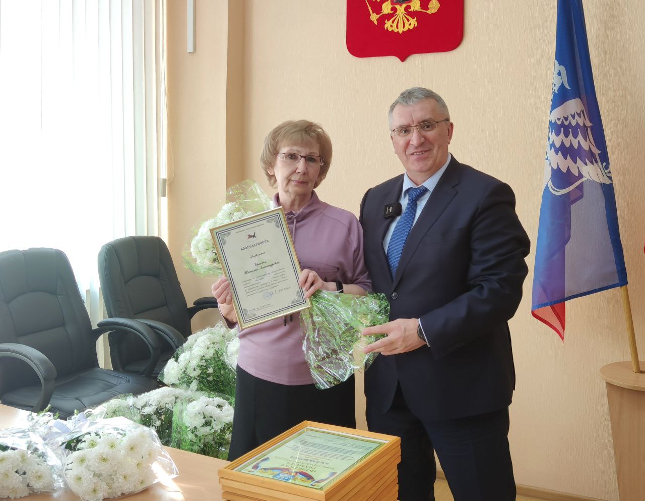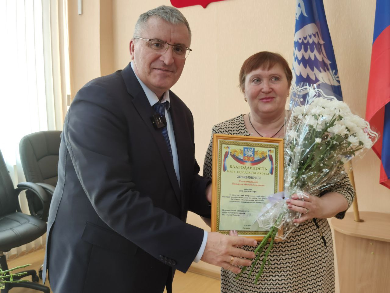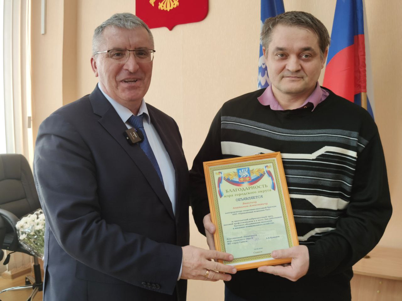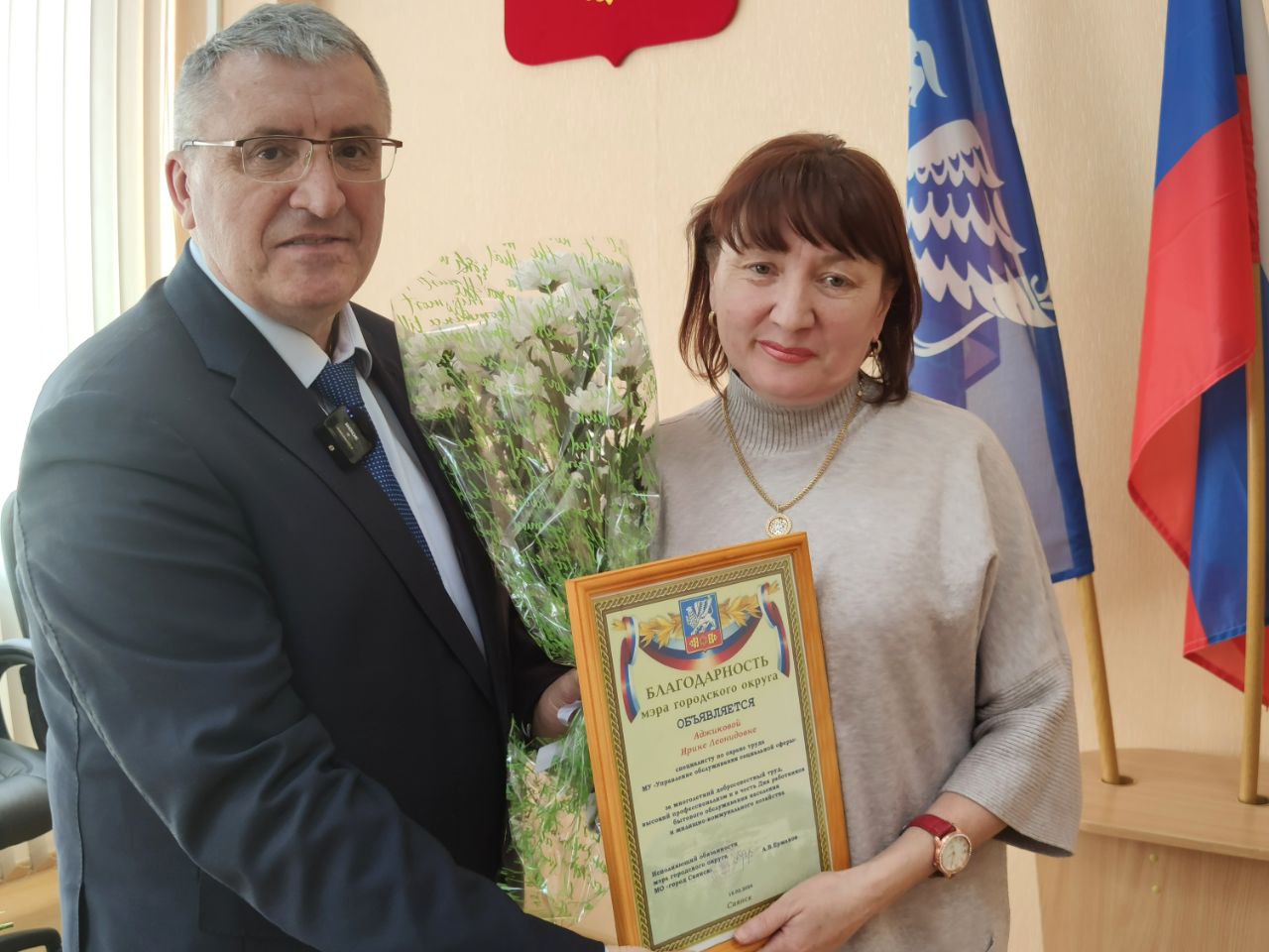 Александр Владимирович и Мария Фёдоровна поздравили коллег с праздником и пожелали работать также слаженно, чтобы Саянск как и прежде оставался самым чистым и одним из лучших в Иркутской области.