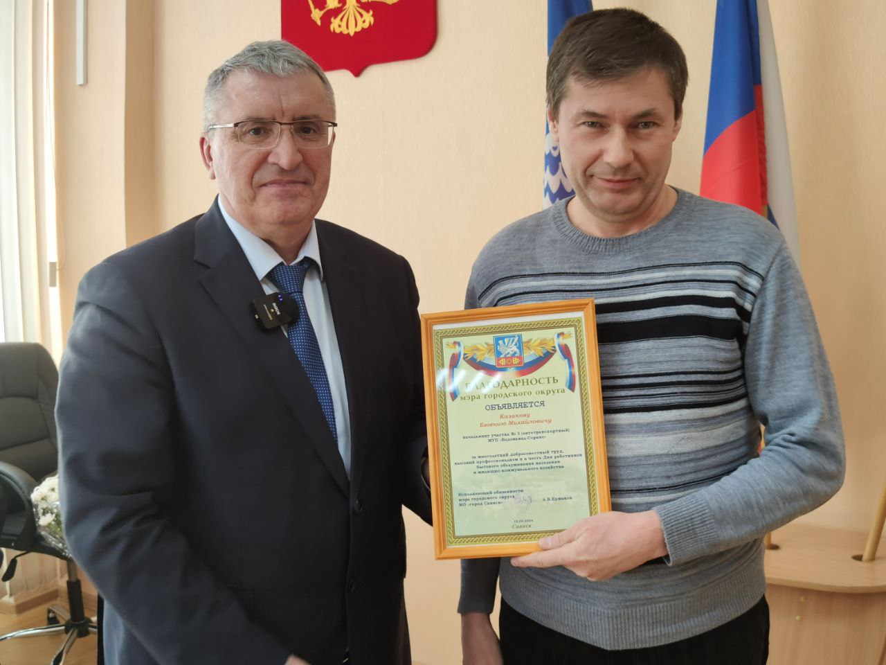С почетной миссией для вручения благодарностей от Губернатора Иркутской области, Почетных грамот министра жилищной политики и энергетики Иркутской области, благодарностей министра жилищной политики, энергетики и транспорта Иркутской области и Почетных грамот мэра городского округа выступил и.о. мэра г. Саянска А.В. Ермаков.