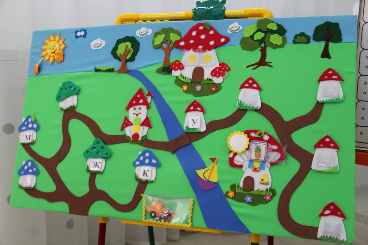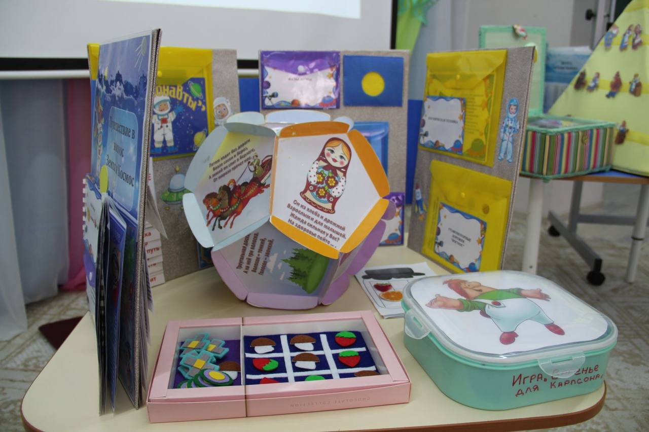 Для коллег из соседнего города педагоги подготовили интересную выставку многофункциональных пособий, сделанных своими руками, которые воспитатели активно используют на занятиях с детьми.