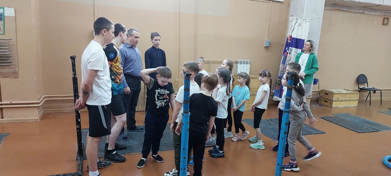 После успешного выполнения нормативов, для ребят была организована экскурсия в зал тяжелой атлетики, где их встречал один из тренеров Спортивной школы города Саянска – Сергей Косарев и спортсмены отделения тяжелой атлетики.Юноши, не один год занимающиеся спортом, продемонстрировали будущим первоклассникам несколько упражнений, входящих в состав соревновательной программы данного вида спорта. Ребята с интересом и увлечением слушали тренера и изучали инвентарь, некоторые даже попробовали выполнить упражнение, пока конечно же без тяжелого инвентаря.