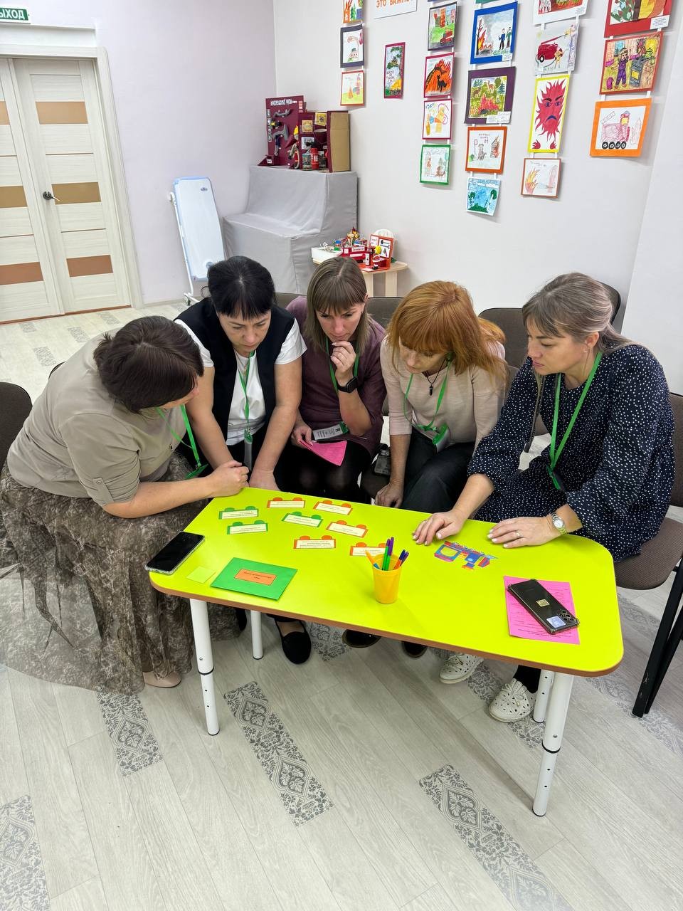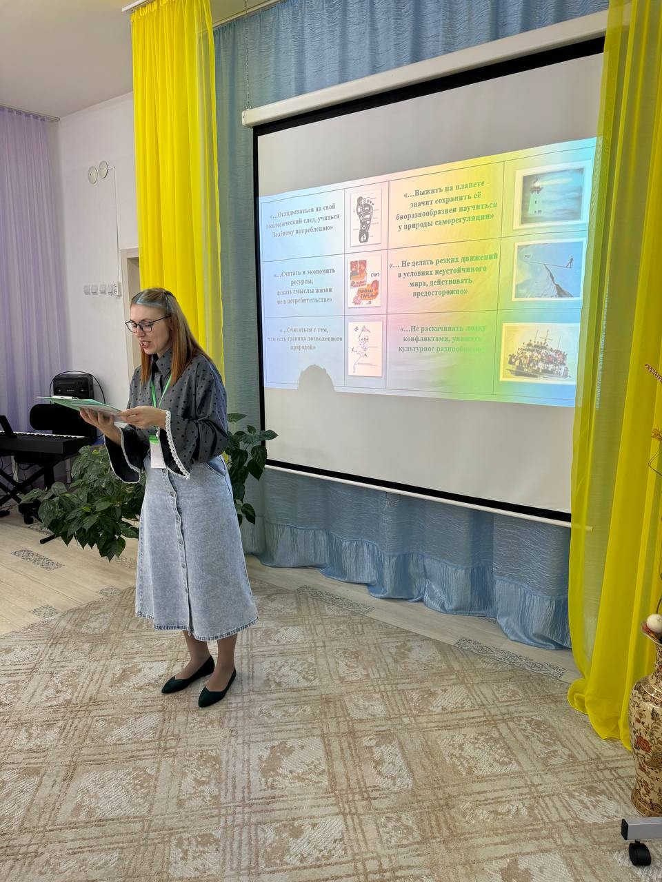 В практической части педагоги из МКДОУ No16, Мария Шестак, Александра Очковская, Алёна Растиженко провели с коллегами из г. Саянска деловую-игру «Осваиваем концепцию экологического образования», которая направлена на уточнение компетенций всех участников образовательных отношений в сфере экологического воспитания, с целью устойчивого развития в глобальном мире. Игра содержала много интересных заданий: «купить в магазине экологические продукты», «решить экологический кроссворд», «удержать баланс», «проанализировать фрагмент мультфильма». Для закрепления знаний, полученных в игре, воспитатели Т. Харитонова, А.Макарова, О.Розум предложили участникам семинара квест-игру «Зеленые аксиомы». Педагоги из МДОУ No27 провели с участниками семинара мастер-класс «Инновационные технологии в экологии: миф или реальность?», в котором продемонстрировали методы ТРИЗ-технологии. Воспитатель Оксана Савкина предложила «Метод фокальных объектов», суть которого заключается в перенесении свойств одного предмета на другой. Наставническая пара Татьяны Аференок и Виктории Николаенко показали варианты метода «Типовые приемы фантазирования» посредством дидактической игры и анимированной презентации. Заместитель заведующего по ВМР Ирина Каурова представила «Метод системного оператора», представляющий собой девятиэкранную схему талантливого мышления, средствами которой необходимо рассматривать любую систему и решать возникающие проблемы. В заключении, все участники обменялись мнением об актуальности данного мероприятия. Татьяна Бадулина, директор Центра развития образования г. Саянска, высоко оценила проведенный семинар-практикум,предложила коллегам из г. Зимы организовать следующую встречу в более широком формате, так как такой опыт заслуживает быть представленным большей аудитории педагогов. Закрытие семинара состоялось под песню, составленную искусственным интеллектом из ключевых слов, прозвучавших на встрече.